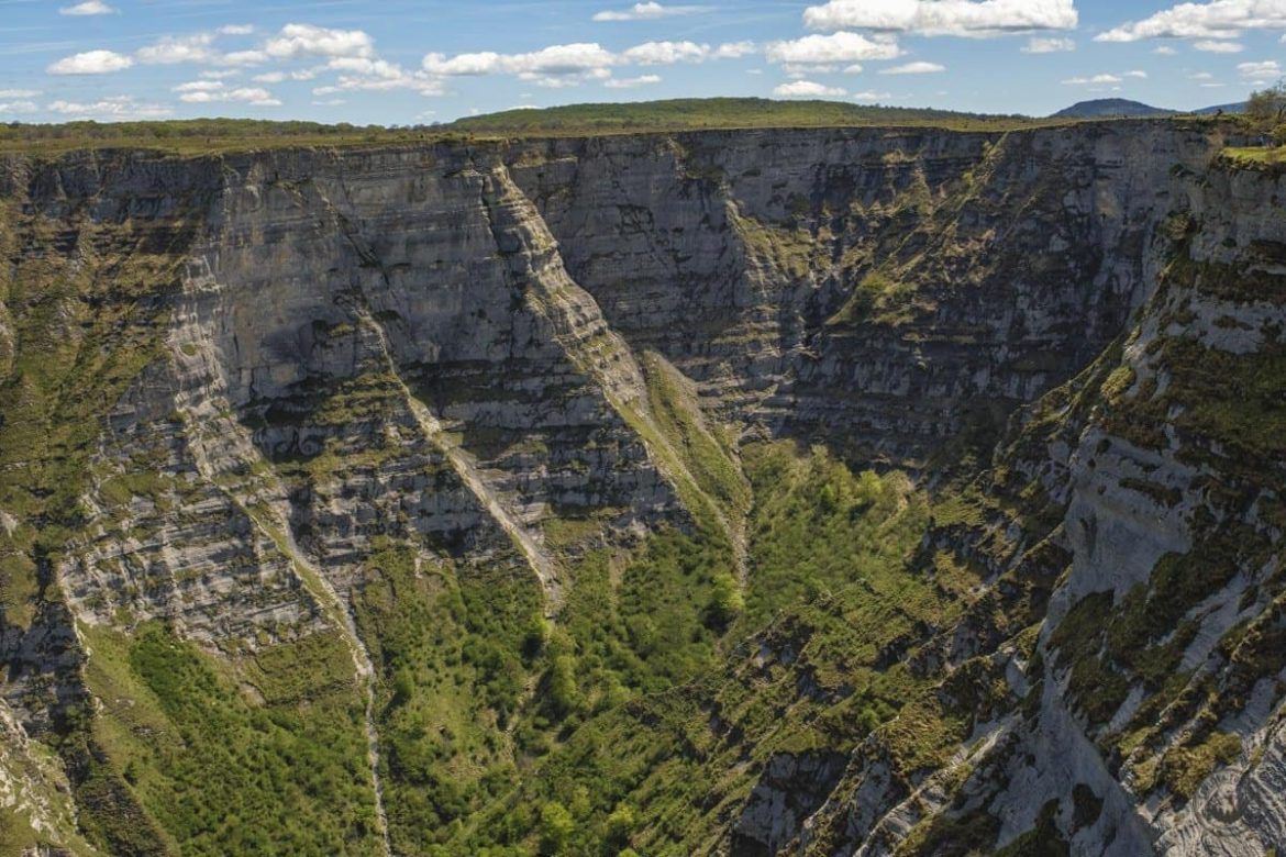 Hoy nos acercamos al abismo en una ruta por el Salto del Nervión y todos sus miradores. Un paisaje en la frontera entre Burgos y Vitoria-Gasteiz que te quita el hipo a cualquiera. Asómate a los acantilados del Salto del Nervión y disfruta de los más de 200 metros de caída. Eso sí, para ver agua tendrás que esperar a las lluvias. Pero en cualquier caso, la ruta de senderismo conocida como la Senda del Cortado es preciosa y muy recomendable. ¡No te la pierdas!