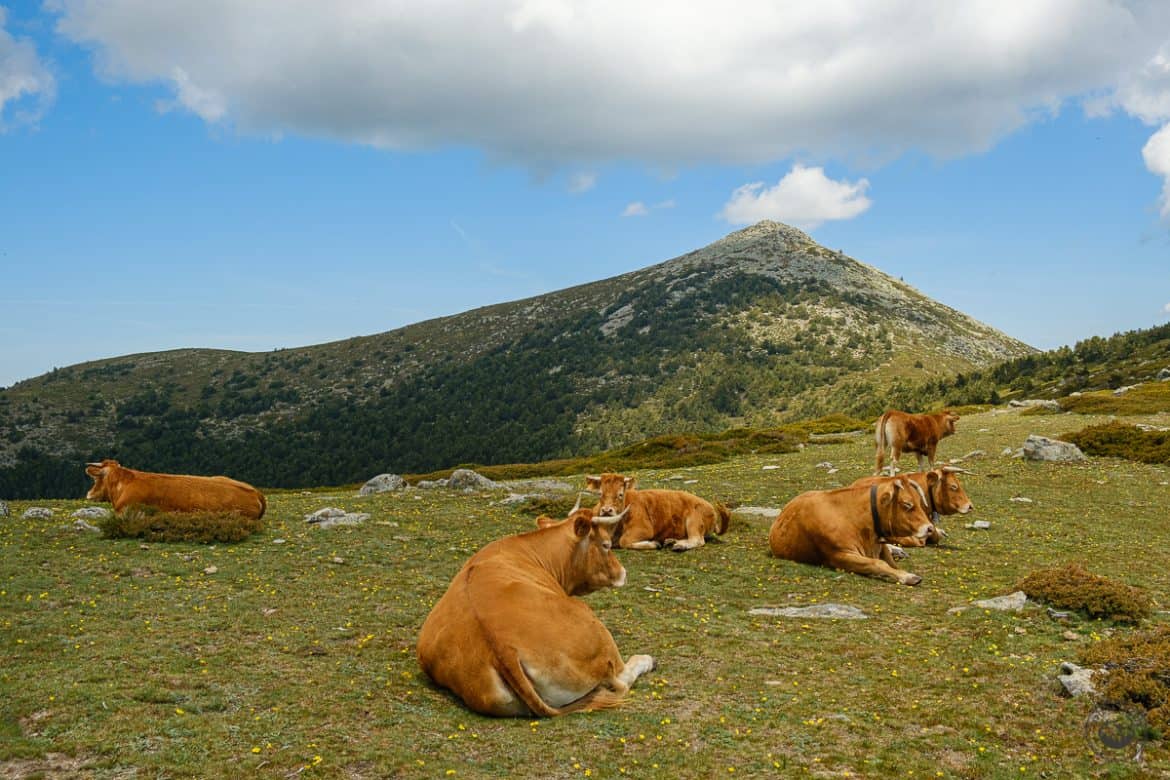 Volveremos a bajar con cuidado el tramo de piedras hasta el descanso anterior, pero ahora tomaremos la senda de frente. Una pequeña cuesta nos lleva directos a Cerro Minguete. Y desde aquí a la derecha veremos un precioso valle, al más puro estilo asturiano (al menos en primavera) con toda la pradera verde y llena de vacas pastando. Para mí la parte más bonita de la ruta. Un camino ya muy sencillo, casi sin desnivel que nos llevará hasta Peña Bercial.