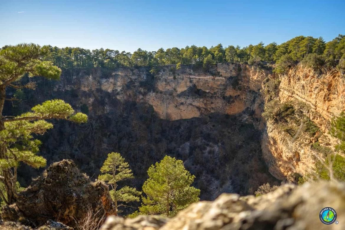 Seguimos el track o ruta para conocer las Torcas de Palancares y llegaremos subiendo por una carretera asfaltada a Torca Rubia. Estará a mano izquierda y es otra de las dolinas más importantes de la zona. Tiene una profundidad visible enorme, apenas llegas a ver el fondo de la misma.