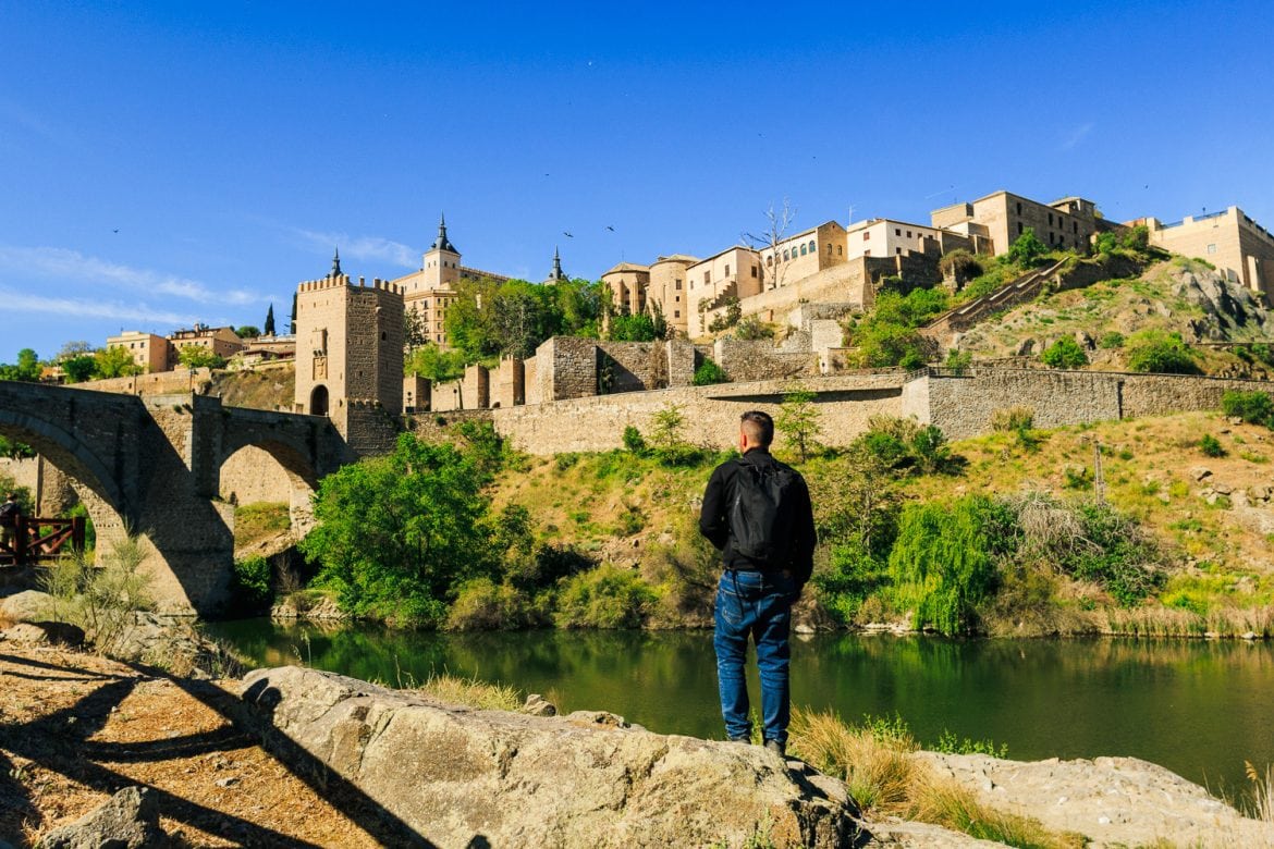 Partimos del parking de Azarquiel, donde sale un camino que alberga varios miradores del río Tajo nada más empezar. Así subiremos hasta el Puente de Alcántara, el mejor lugar para divisar la primera imagen imponente de Toledo con el Alcázar en lo alto.